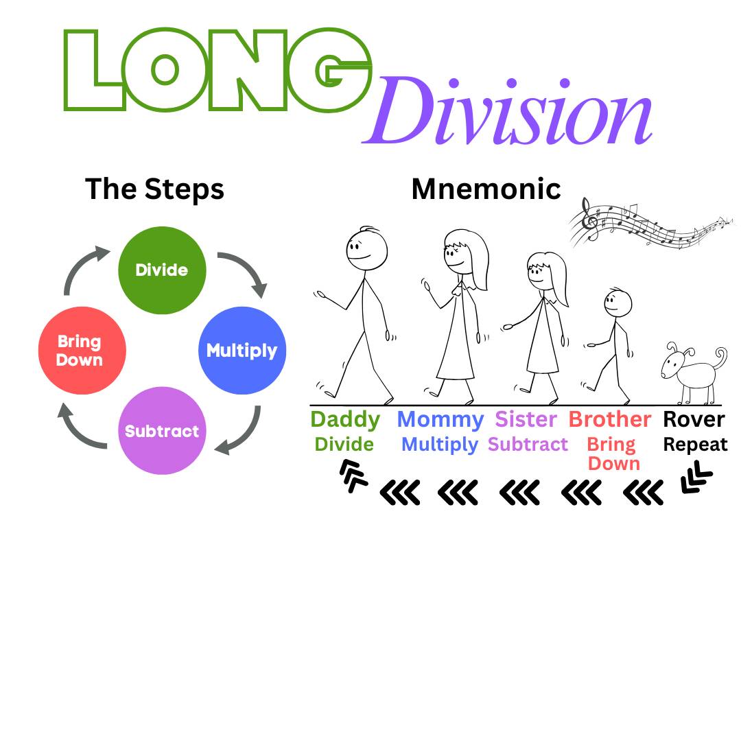 Teach long division with 5 simple, color-coded steps, a catchy song, and cute visuals your child will never forget.