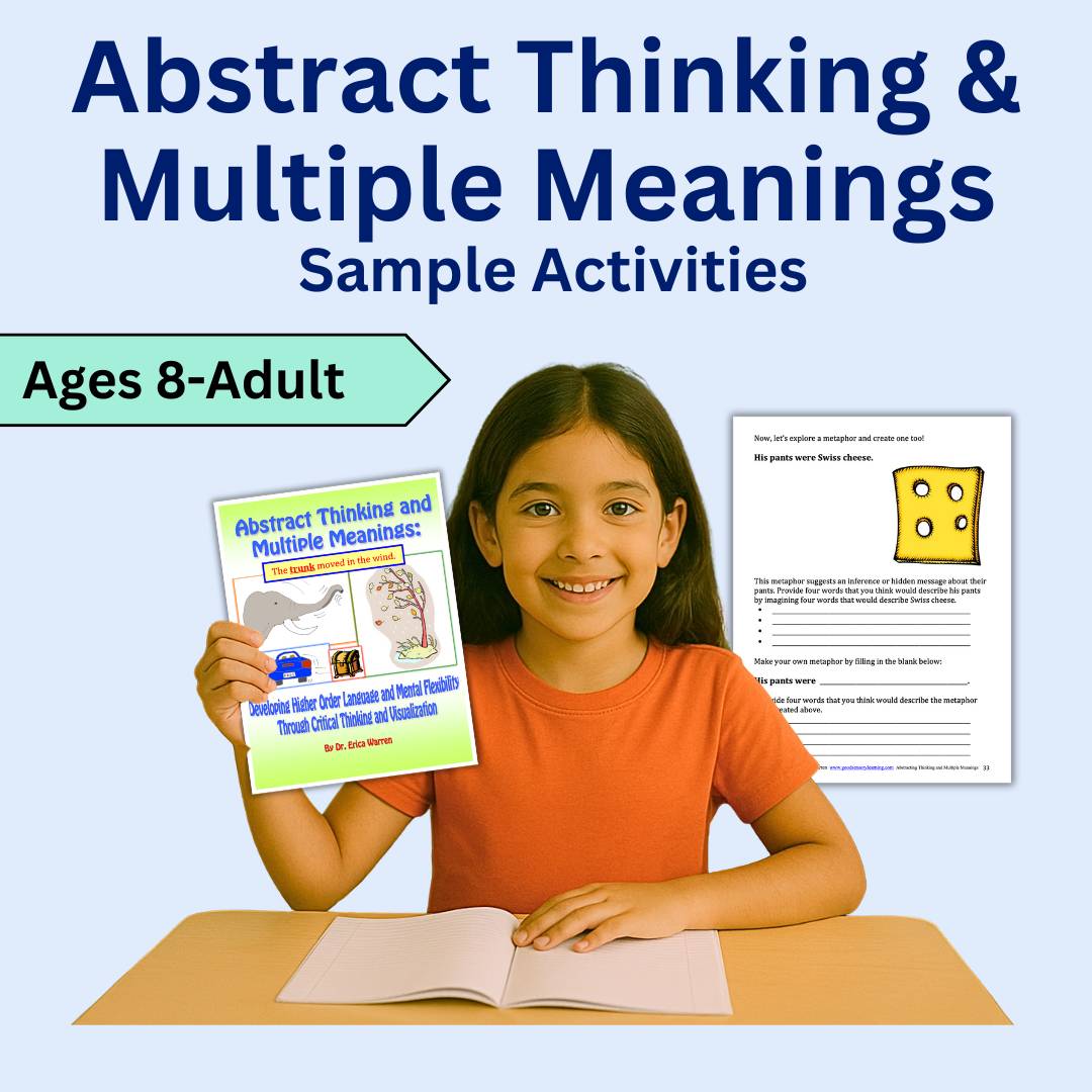 Dive into Dr. Erica Warren’s Abstract Thinking & Multiple Meanings Sample Activities workbook! This multi-sensory resource brings critical reasoning, figurative language, and multiple-meaning words to life through fun, game-like activities