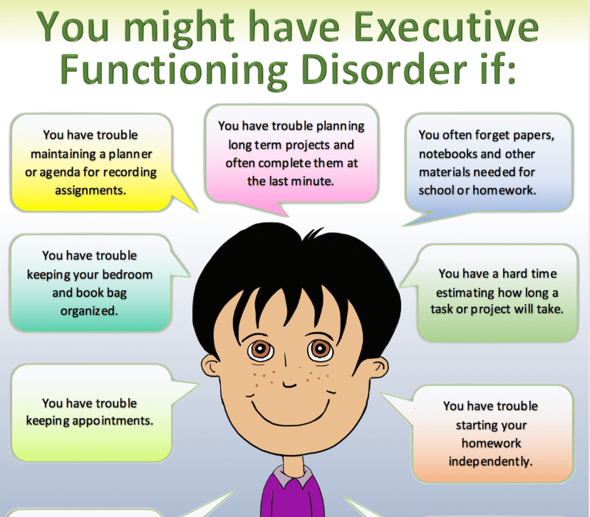 Grab Dr. Erica Warren’s color-coded Symptoms as well as Myths & Truths About Executive Functioning handout, that can help parents, teachers, and specialists speak a common language.