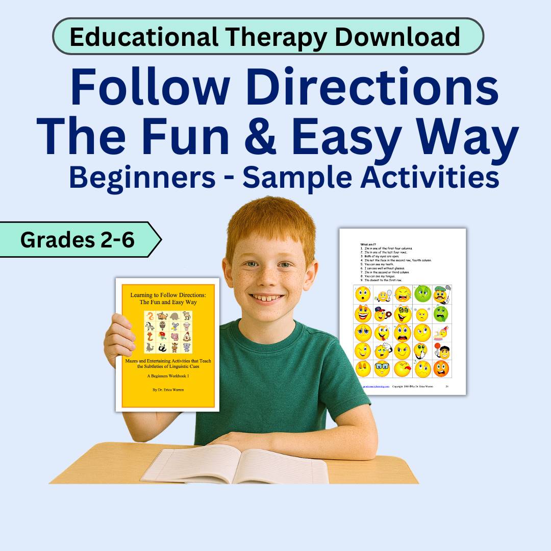 Unlock the secrets of linguistic cues with these free sample activities from Learning to Follow Directions: The Fun and Easy Way by Dr. Erica Warren. This printable preview features joyful handouts designed to build vital linguistic skills.