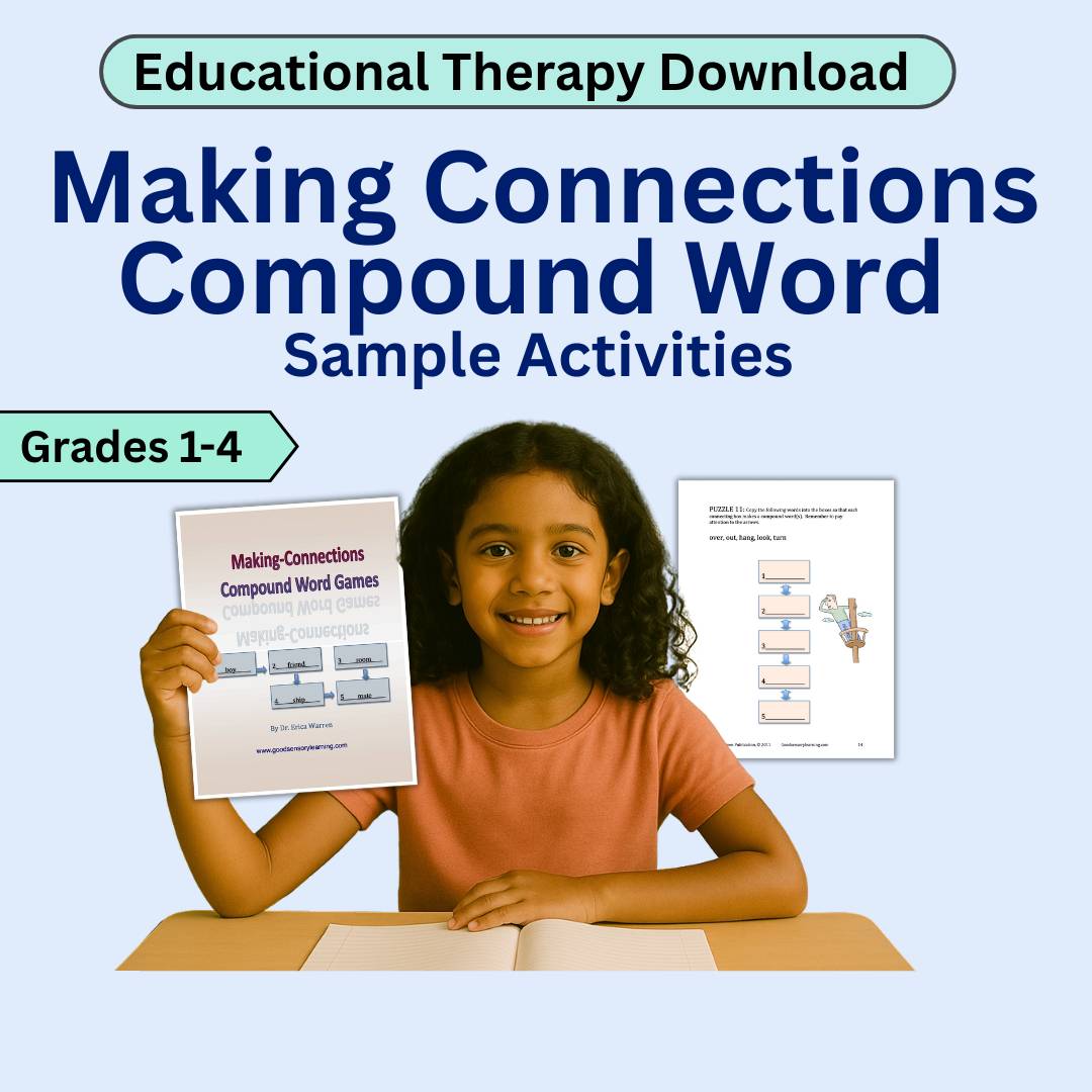 Transform homework into "homefun" with this free sampling of Making-Connections Compound Word Games by Dr. Erica Warren! Designed for learners of all ages, this 8-page preview features playful, multi-sensory activities to boost language processing, sequential reasoning, and verbal skills.